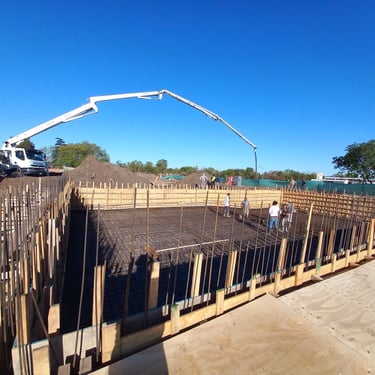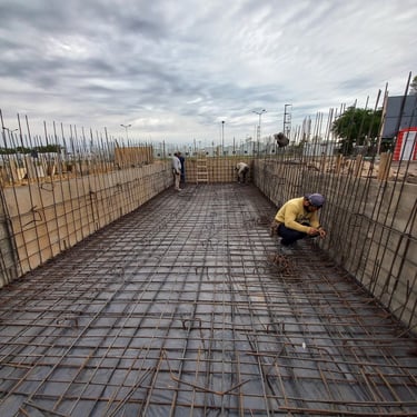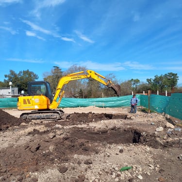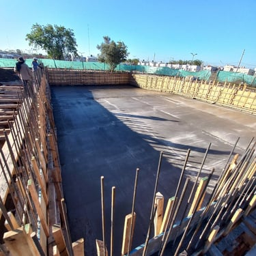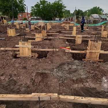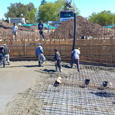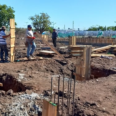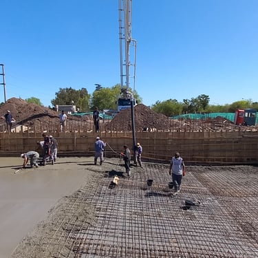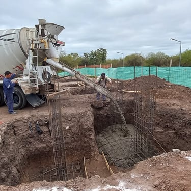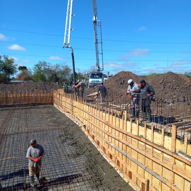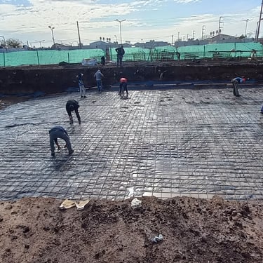 Se realizó la construcción de dos piletas, una semiolimpica de 25m x 12,5m y profundidad variable desde 1,50m hasta 2,75m y otra pileta de 12m x 4m y profundidad de 1,50m. Adicionalmente se ejecutaron 116 bases y vigas de encadenado, para la ejecución de zonas de vestuario y el techado de todo el polideportivo que incluirá canchas, vestuarios, oficinas y piletas. Esta construcción fue realizada tanto para el polideportivo ubicado en Malvinas Argentinas, como para el polideportivo ubicado en Rafael Calzada, ambos pertenecientes al municipio de Almirante Brown.