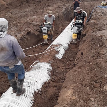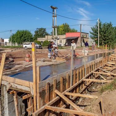 Se realizó la construcción de 34.000m2 de pavimento rígido en la Av. Independencia, Las Flores, provincia de Buenos Aires. Adicionalmente se ejecutaron diversas obras para el drenaje superficial de la zona, tales como la construcción de sumideros de pavimento tipo (desde S2 hasta S6), cámaras de inspección, colocación de cañerías para drenaje pluvial con caños de PVC (TUBOLOC) diámetro 800mm y 1200mm y construcción de un conducto doble celda en hormigón armado.